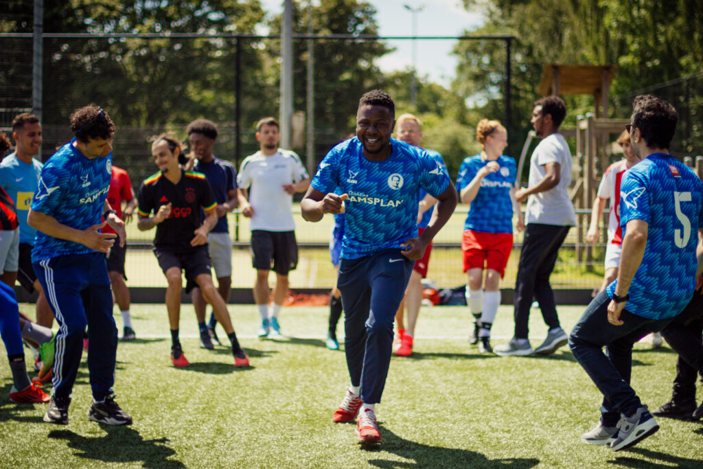 In het project ‘Samen coachen’ volgt een groep van 10-15 statushouders een cursus tot voetbaltrainer/coach. De cursus bestaat uit 7 bijeenkomsten en een stage, waarin zowel theoretische als praktische aspecten aan bod komen. De bijeenkomsten worden verzorgd door Lifegoals Amsterdam, de Sportpedagoog en hoofd opleidingen Ferry van Geuzenmiddenmeer. Deze cursus is onderdeel van het MDT Set Your Lifegoals-project.