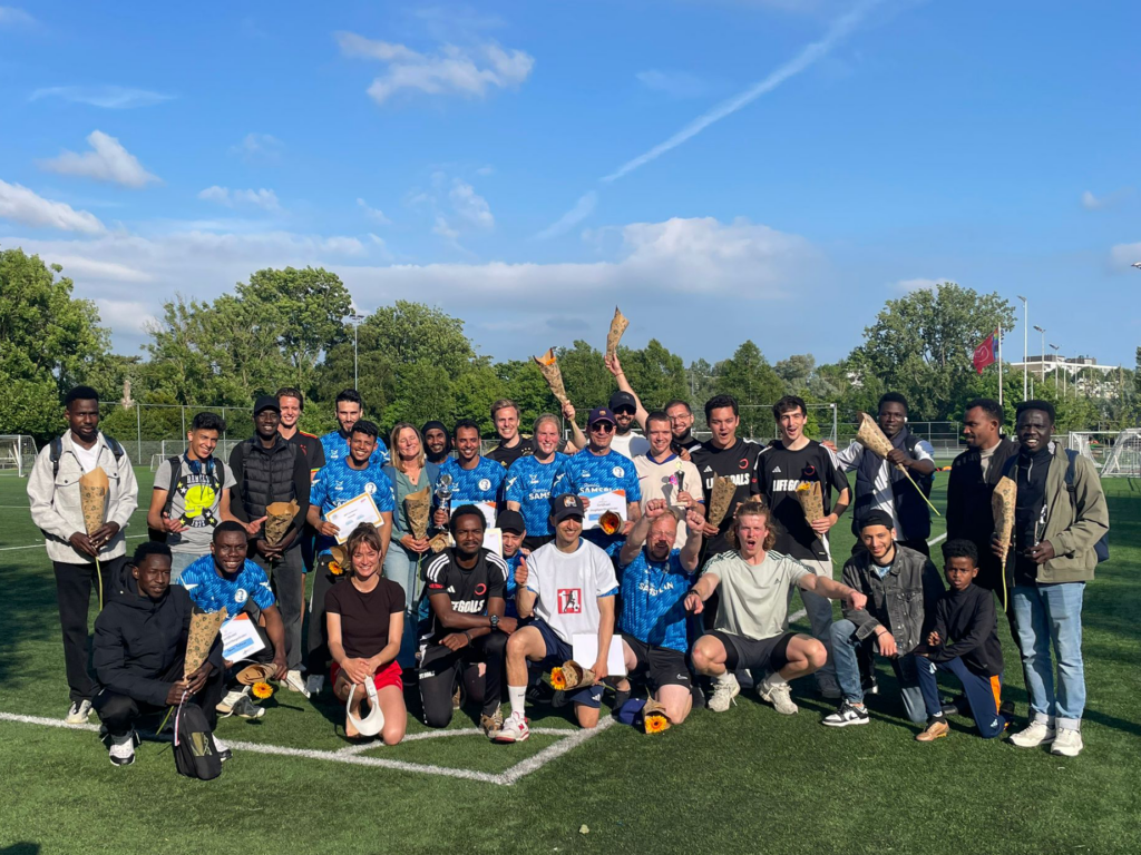 In het project ‘Samen coachen’ volgt een groep van 10-15 statushouders een cursus tot voetbalcoach. De cursus bestaat uit 6 bijeenkomsten en eventueel een stage, waarin zowel theoretische als praktische aspecten aan bod komen. De bijeenkomsten worden verzorgd door Lifegoals Amsterdam, de Sportpedagoog en hoofd opleidingen Ferry van Geuzenmiddenmeer. Deze cursus is onderdeel van het MDT Set Your Lifegoals-project.